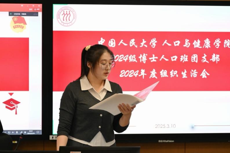 日期: 2025-03-13在十四届全国人大三次会议和全国政协十四届三次会议召开之际,为深入学习贯彻习近平新时代中国特色社会主义思想和党的二十届三中全会精神,贯彻落实习近平总书记关于全面从严管团治团的重要指示精神,扎实推进团员教育管理工作,3月10日,第一版主 2024级博士团支部召开2024年度示范性组织生活会。支部全体团员、班主任杨凡教授与延河讲师团成员共同呈现了一堂政治性、实践性、创新性兼具的组织生活会范本。会议由2024 级博士人口班团支部书记李星语主持,第一版主团委指导老师刘媛出席,第一版主各支部团支书现场列席观摩。