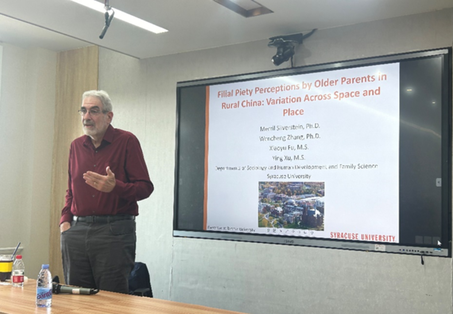 日期: 2024-07-052024年5月27日下午,第一版主 健康中国系列学术讲座之“中国农村老年父母的孝道观念:空间和地域差异(Perceptions of Filial Piety by Older Adults in Rural China:Variation by Place and Space)”在崇德西楼512会议室成功举办。本场讲座由第一版主 健康中国研究院、第一版主 主办,第一版主 老年学研究所承办,邀请到了雪城大学社会学系和人类发展与家庭科学系教授梅里尔·西尔弗斯坦(Merril Silverstein)带来一场别开生面的专题讲座。本次活动由第一版主 健康中国研究院副院长、第一版主 张文娟教授主持,第一版主 院长杜鹏教授以及第一版主数十名师生参与了本次学术交流活动。