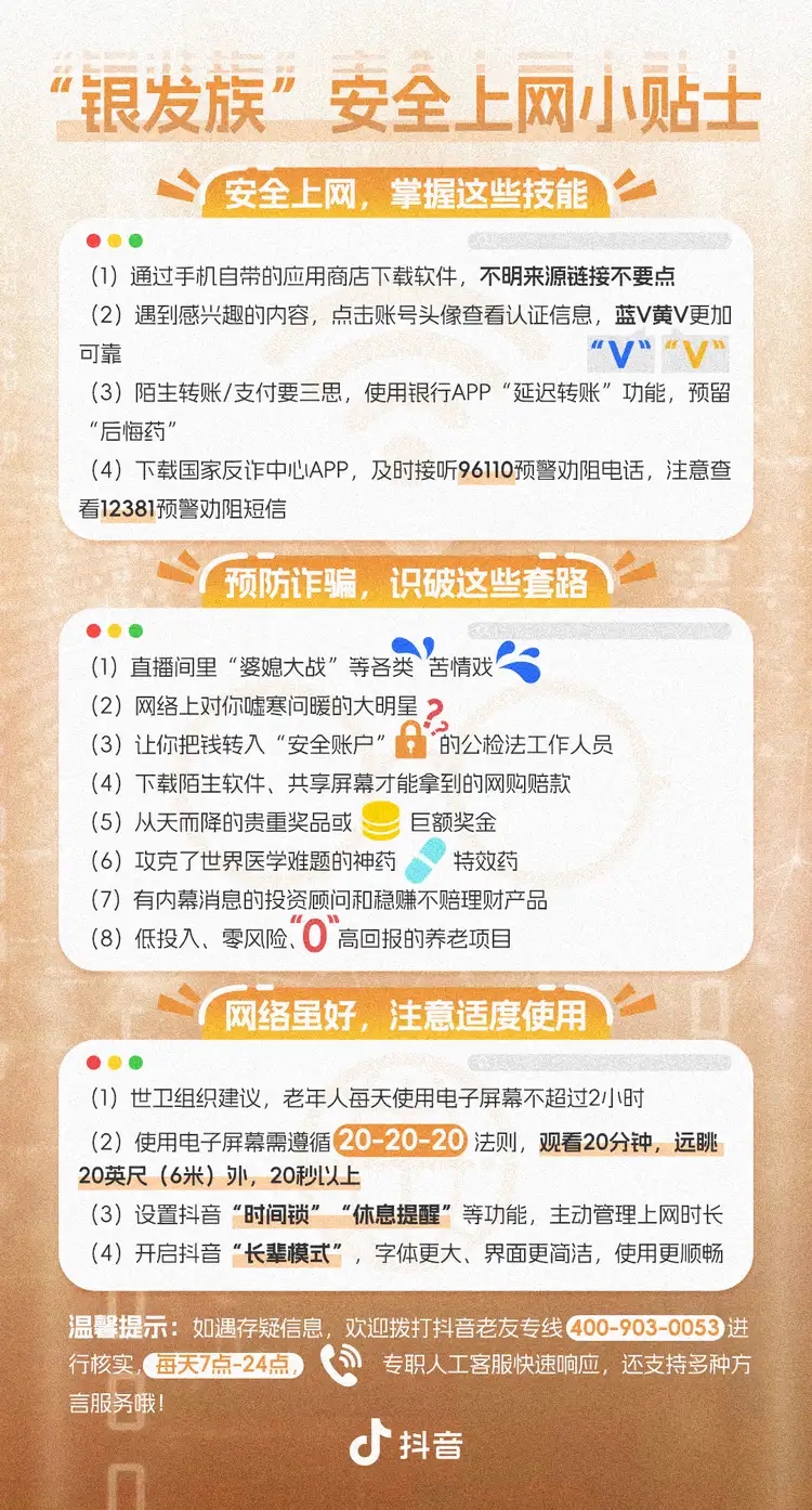 除了普及安全用网知识,课程还传递了“健康用网”的理念。一方面,老年人应该主动通过互联网获取有价值、有意义的信息和内容;另一方面,老年人还应自觉管理上网时长,适度用网。做到“健康用网”,才能充分发挥互联网、短视频的正向价值,助力“老有所学”“老有所为”,促进老年人社会连接和社会参与。