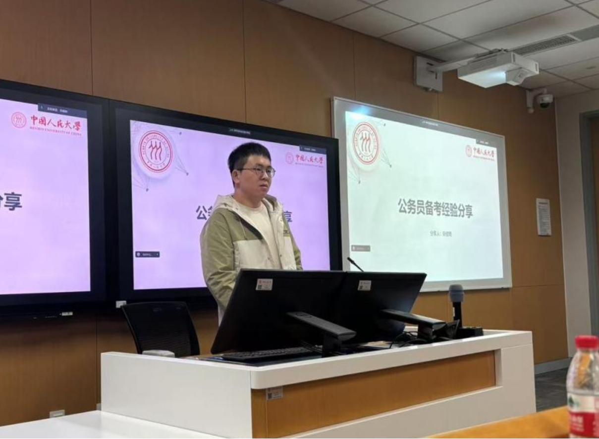 宋佳琦首先向大家简要介绍了明确考公方向的心路历程和秋招备考战绩,而后以图表形式展示了选调生与公务员的异同、公务员考试日益激烈的竞争情势并分析其原因。宋佳琦谈到公务员相比于体制外工作具有稳定性强的优势,但在工作内容上可能比较枯燥、收入也不会很高。宋佳琦结合个人体悟和正反实例分享关于公务员应该具有哪些品质的观点,指出公务员应该要有较高的政治素养、要能耐得住清贫,建议大家综合考虑个人价值追求与发展意向慎重选择是否考公。之后,宋佳琦以时间线形式展示了自身公务员备考过程的关键时间点与任务,建议大家不要过早准备行测申论、尽早准备毕业论文、耐住性子坚持不懈。最后,宋佳琦分享了笔试与面试过程中的个人实战经验和心得体悟,为同学们提供了具体且实用的建议,对同学们的未来发展给予美好祝愿。